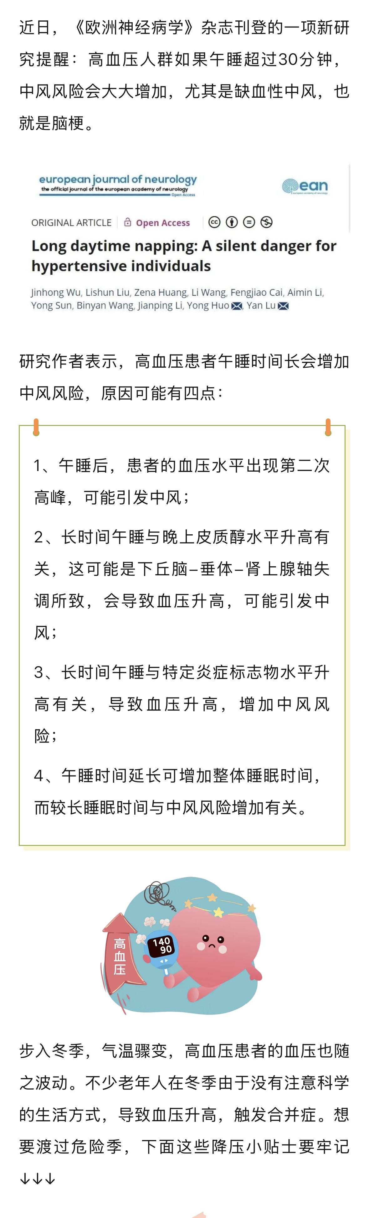 高血壓人群注意:午睡超30分鐘,中風風險顯著增加!