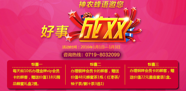 打開神農蜂語微信sysnfy,點擊“微信商城”一次性原價購物滿180元,支付成功,點擊“申請推廣員”,1-2天內審核完畢,即可成為VIP會員,尊享購物9折。元旦加入,每天前10名即送118元J品裝蜂蜜禮盒2提