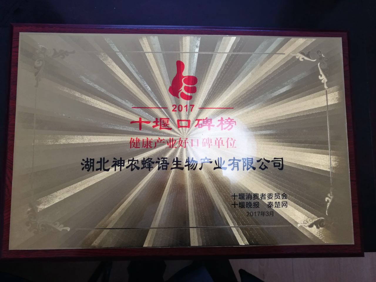 在今日下午,十堰日報社舉行了十堰S屆口碑品P頒獎盛典,湖北神農蜂語生物產業有限公司在此次頒獎盛典中榮譽“健康產業好口碑單位”!值得一提的是,在健康保健產業中,十堰地區僅“神農蜂語”一家得以獲此榮譽!
