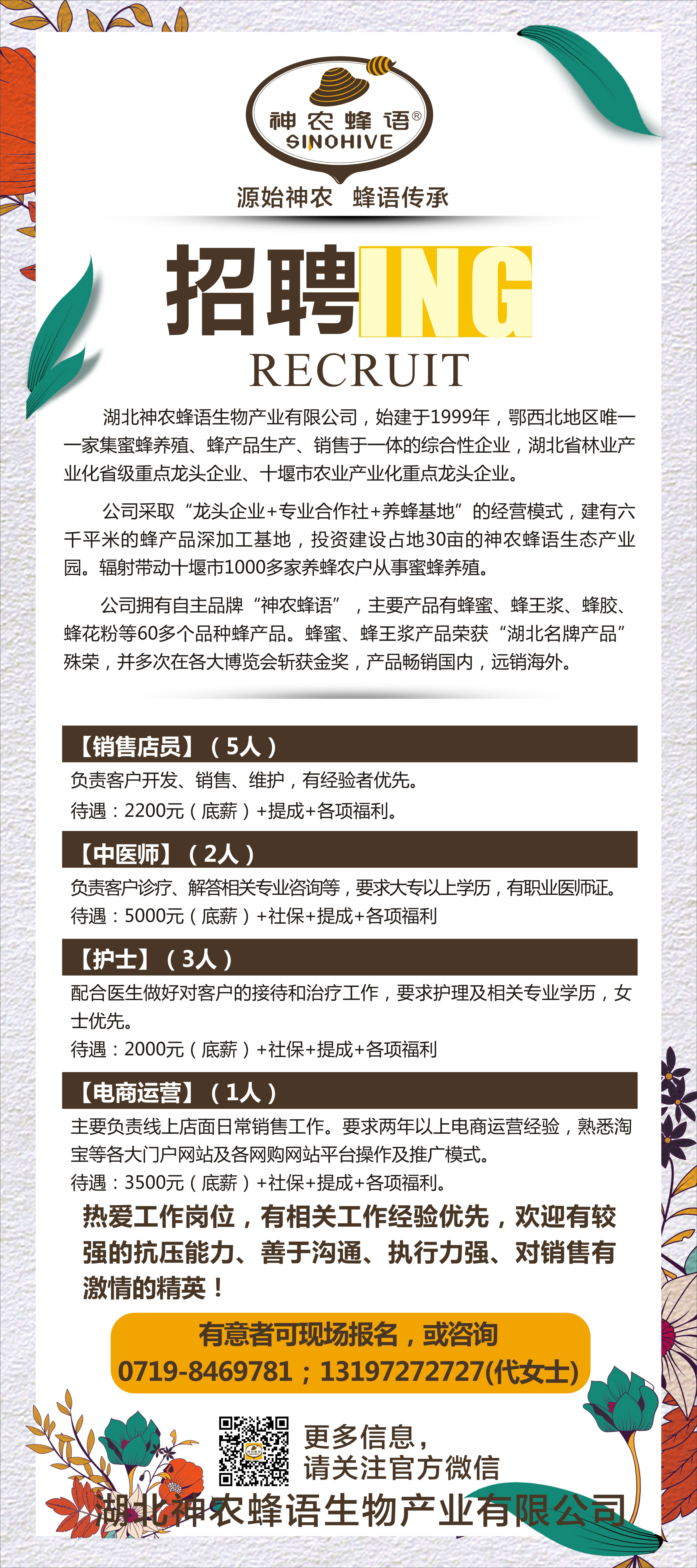 負責客戶診療、解答相關專業咨詢等,要求大專以上學歷,有執業醫師證。