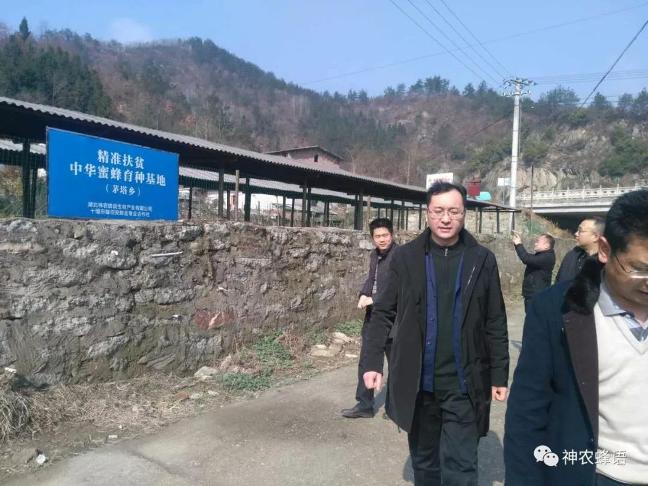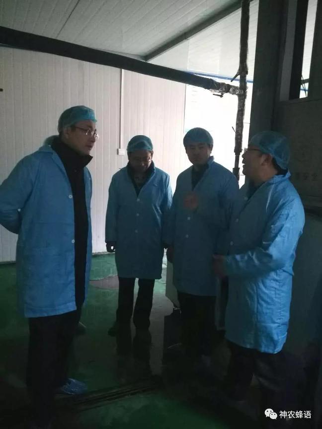 王榮雷一行先來到了位于茅箭區大川鎮的神農蜂語蜂產品加工廠,詳細了解了公司生產的蜂產品的品種、流程、質量管控和銷售等方面的情況。隨后,又來到位于公司設置在茅箭區茅塔鄉康家村的精準扶貧中華蜜蜂育種基地。該基地是神農蜂語公司為滿足中華蜜蜂養殖精準扶貧工作需要而興建的蜂種繁育基地。王榮雷饒有興致地查看了爬滿蜜蜂的蜂脾,對神農蜂語采取“企業+合作社+農戶”的精準扶貧方式表示高度認可,并表示將支持神農蜂語蜂產品進駐供銷電商平臺。