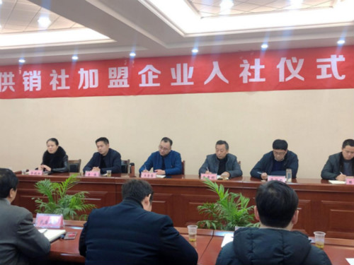 儀式上,加盟企業負責人詳細介紹了企業發展情況,與供銷社簽訂《入社(加盟)協議》,并進行了宣誓和授牌儀式。