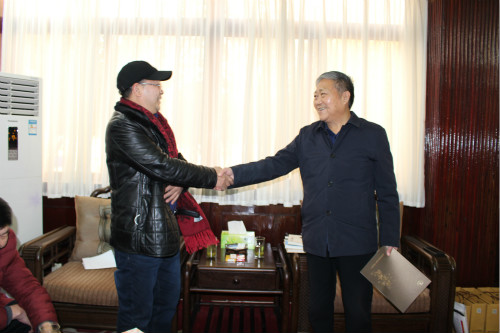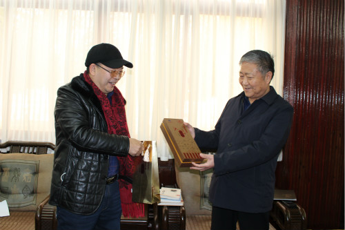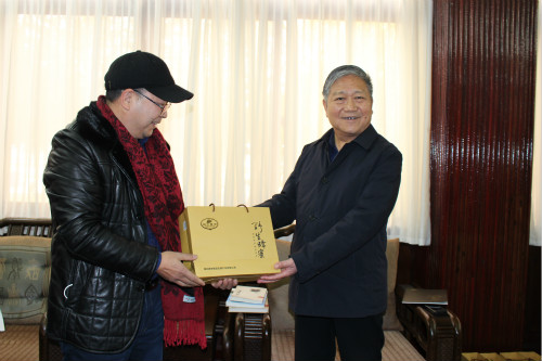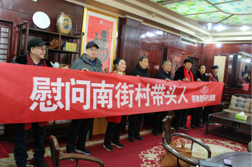 16日,由湖北神農蜂語生物產業有限公司、武當流派書畫院等單位組成的鄂豫慰問代表團走進河南省臨潁縣,探望慰問該縣南街村帶頭人,送去書法作品、原創圖書及蜂產品。