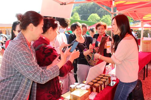 神農蜂語攜帶荊楚優品應邀參展,展位前人氣爆棚,蜂產品銷售火爆。