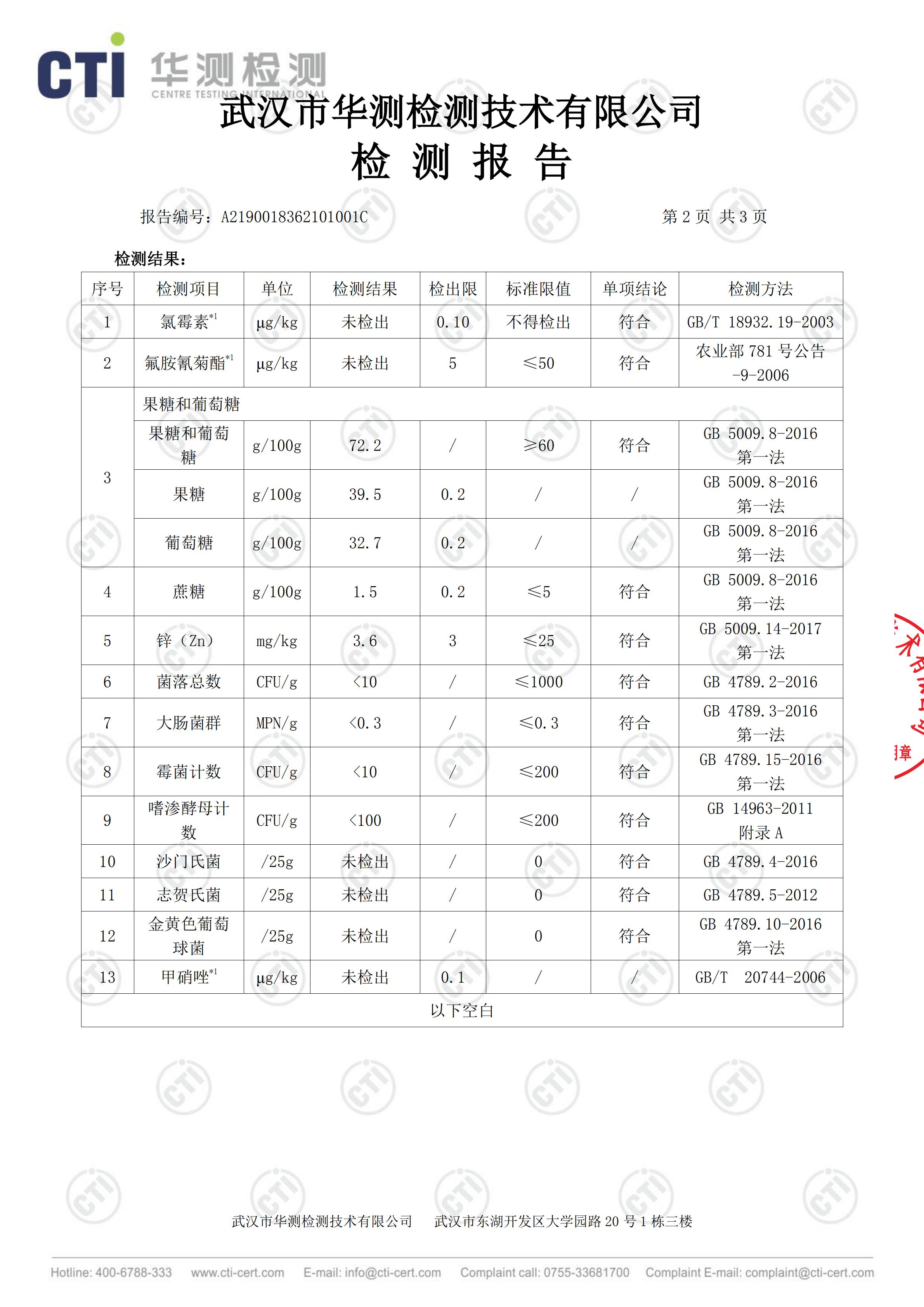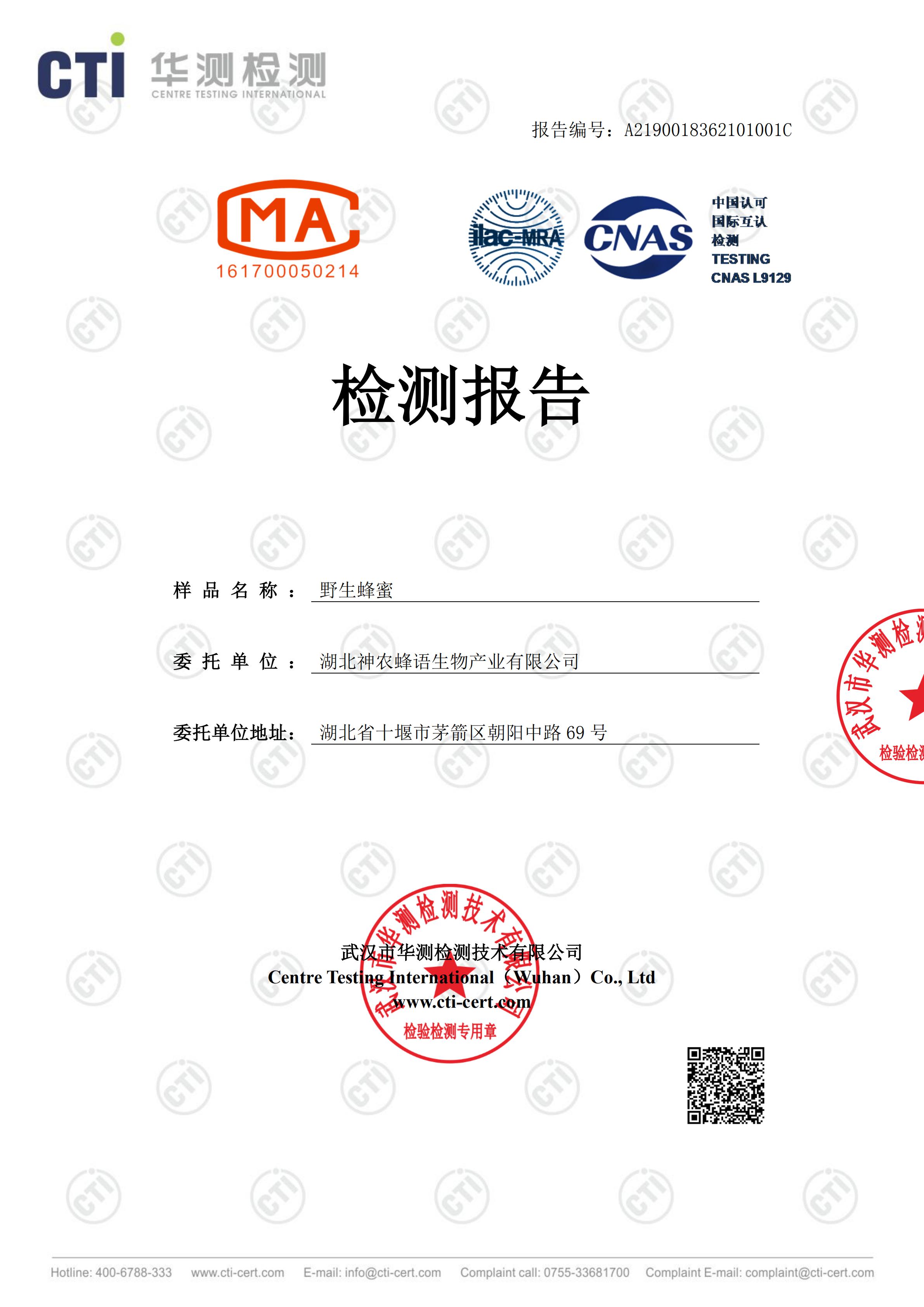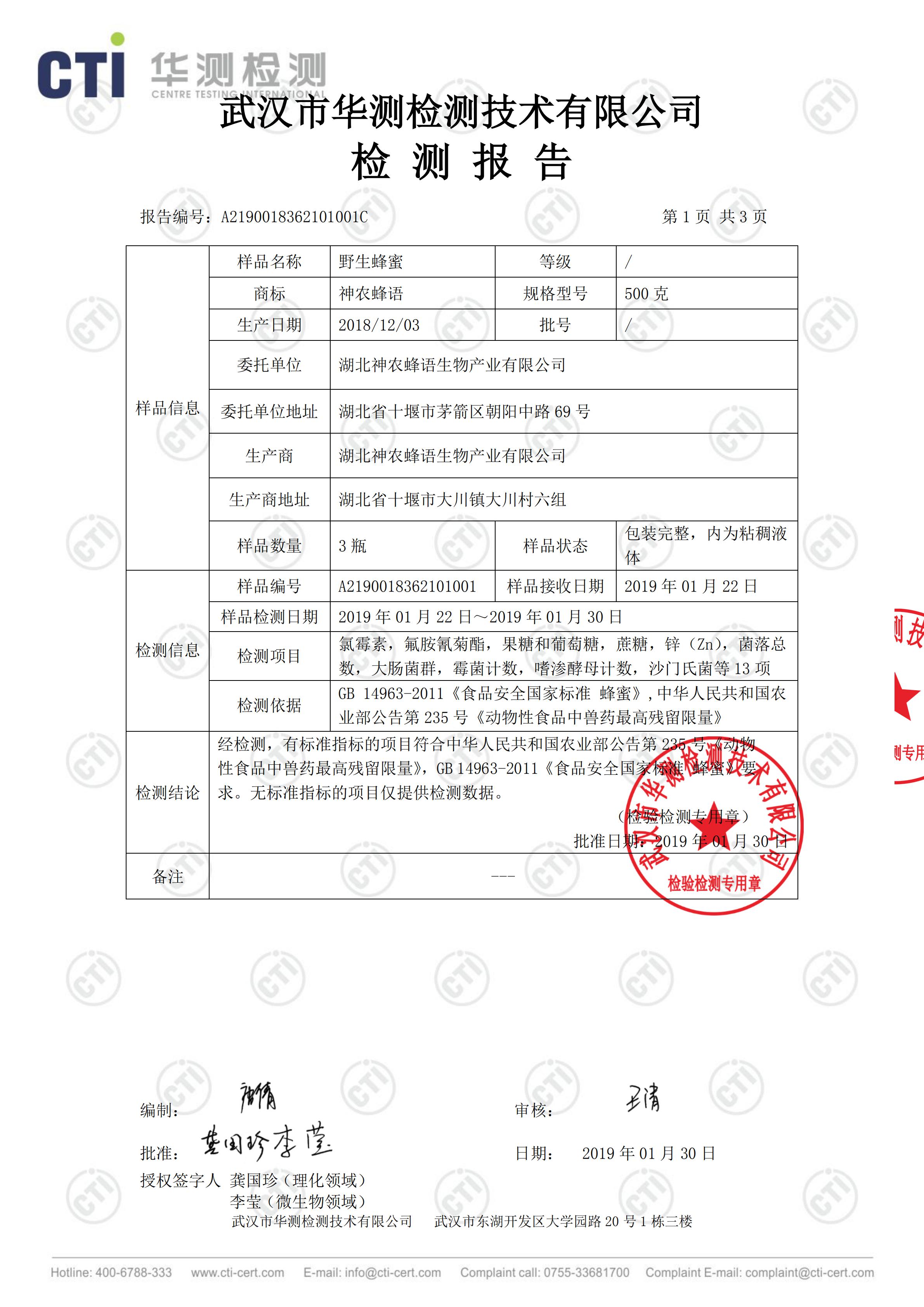 野生蜂蜜檢測報告(武漢華測)2019-1-31