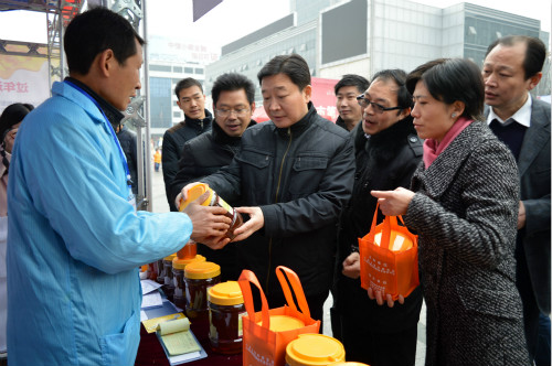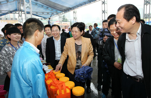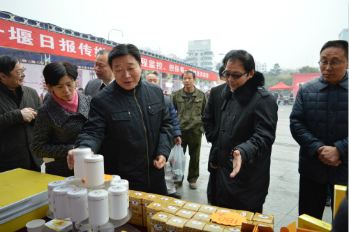 中共湖北省委常委、原十堰市委書記周霽(中)助銷神農蜂語產品