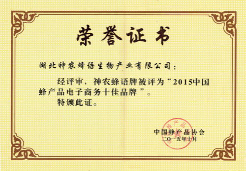 神農蜂語被評為“2015中國蜂產品電子商務十佳品牌”
