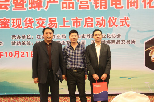 神農蜂語總經理宋學喜同中國蜂產品協會領導王啉(左)及趙小川(右)合影