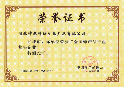 神農蜂語榮獲“全國蜂產品行業龍頭企業”稱號