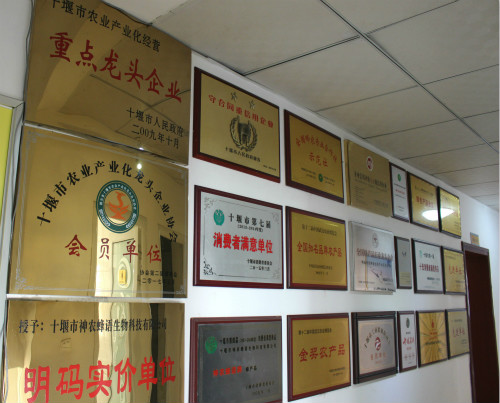 神農蜂語人20多年的執著與堅守,換來了公司長足發展。特別是與北京科學技術委員會和中國航天系統工程有限公司合作以來,建起了蜂產品深加工基地和生態產業園,助推蜂產品質量不斷邁上新臺階,贏得諸多榮譽:“全國知名品牌農產品”“中國蜂蜜質量公認十佳優質放心產品”“中國農博會金獎”“湖北名牌產品”“綠色產品金獎”“十堰市第四屆消費者滿意商品”等。
