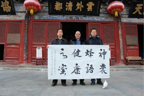 大家談笑風生,其樂融融,興之所至還在紫霄宮題詞留念。一幅寫道:“神農蜂語,健康之蜜?!币环鶎懙溃骸霸搭^活水漢水長,神農蜂語百花香。蜂飛秦嶺八百里,釀成真蜜在武當?!碑斘铱吹街腥A蜂蜜進入仙山福地,大受道眾歡迎,不由心潮澎湃,浮想聯翩。