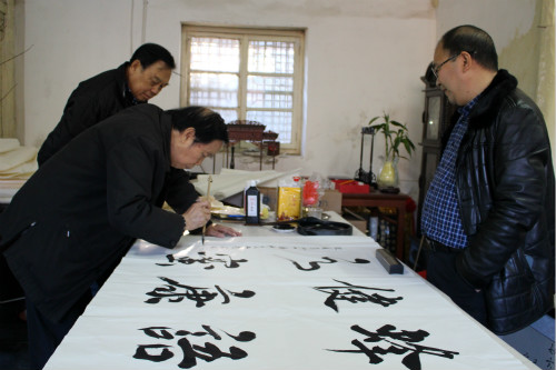 本文作者歐陽學忠(左)紫霄宮揮毫潑墨